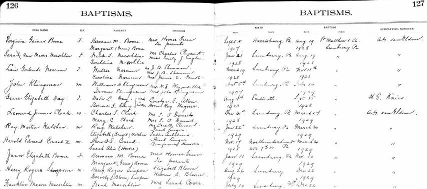 Baptism Place: Sunbury, Northumberland, Pennsylvania, USA