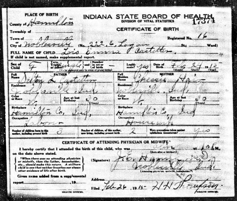 Birth Certificate - Lois Emma Castetter
