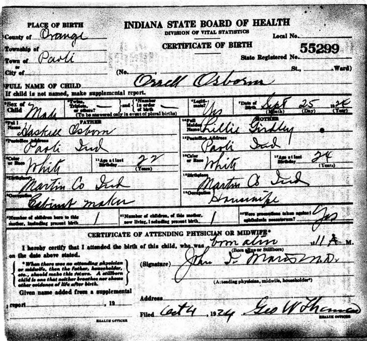 Birth Certificate - Robert Lee Osborn