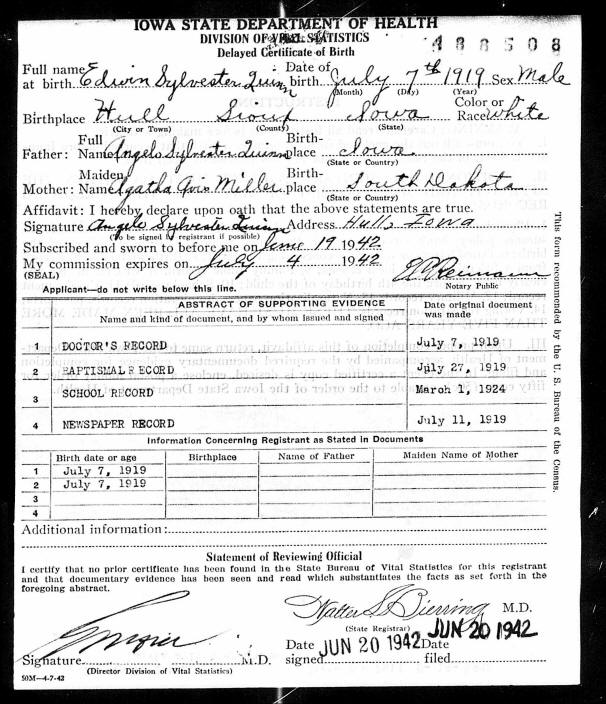 Iowa, U.S., Delayed Birth Records, 1856-1944