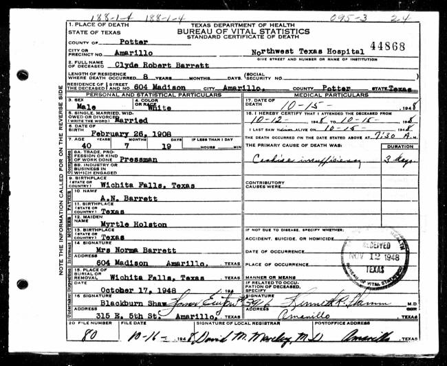Death Records - Clyde Robert Barrett