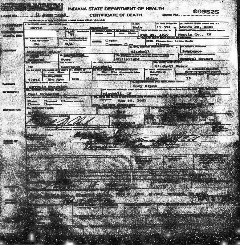 Death Certificate - David Wilson Brassine