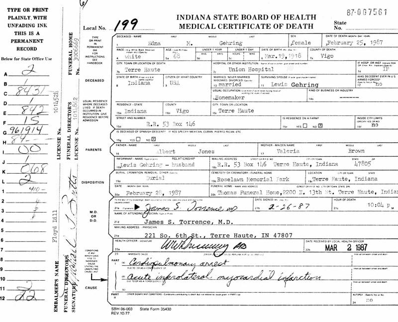 Death Certificate - Edna Mae (Jones) Gehring
