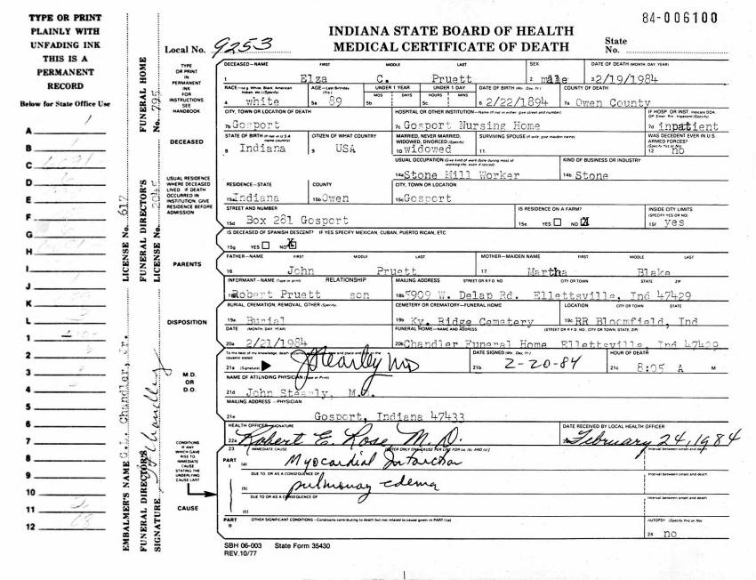 Death Certificate - Elsworth Curtis Pruett