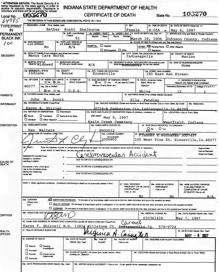Death Records - Esther (Scott) Shelburne