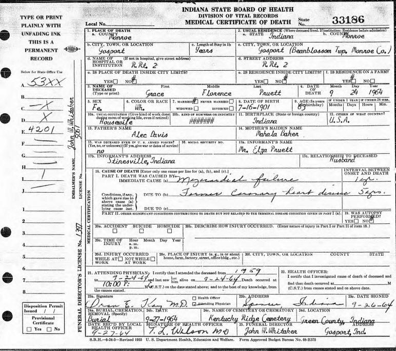 Death Certificate - Grace (Davis) Pruett