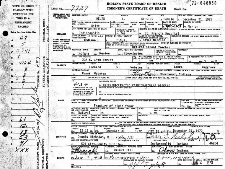 Death Certificate - Helen Louise Webster