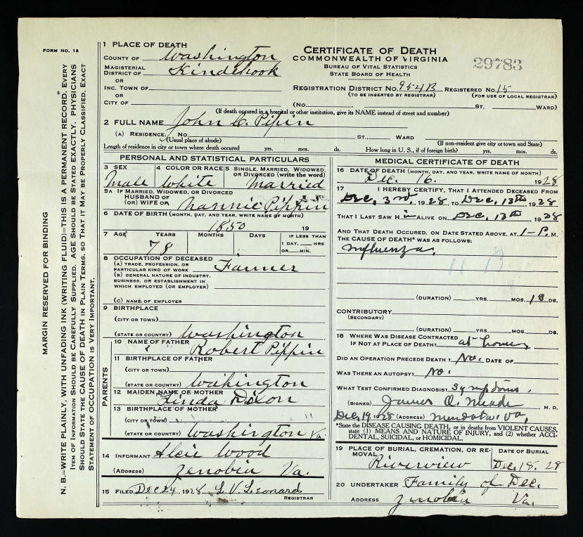 Death Certificate - John Micajah Pippin