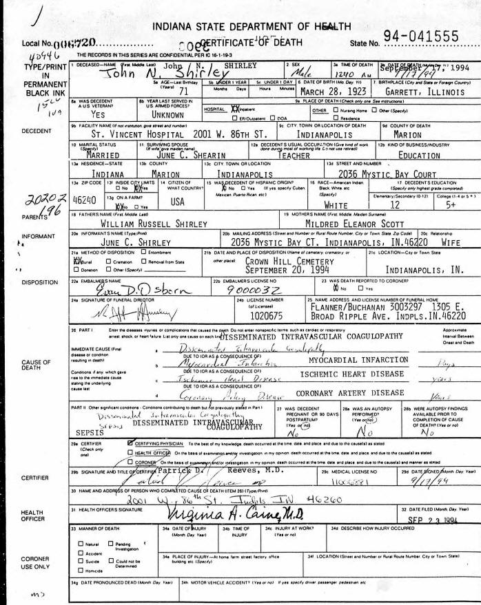 Death Records - John Nelson Shirley