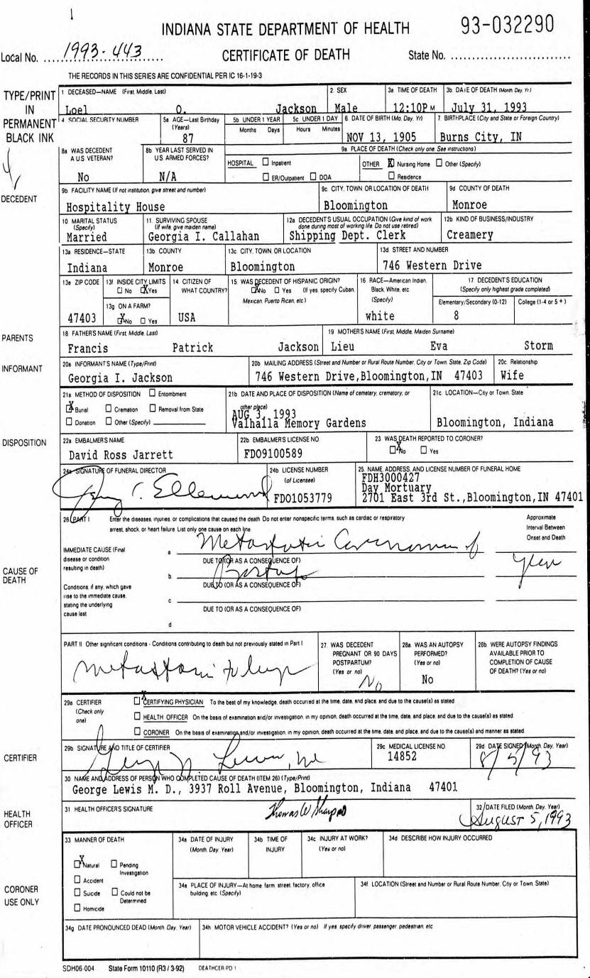 Death Records - Loel Orum Jackson