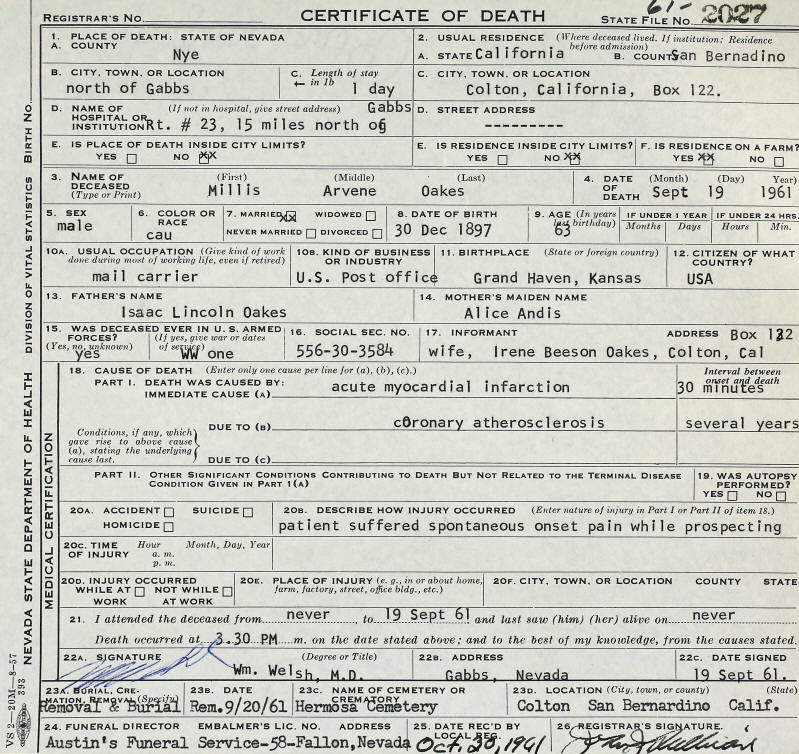 Death Records - Millis Arvene Oakes