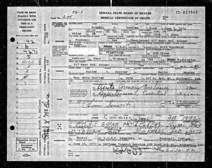 Death Certificate - Russell Ray Trotter
