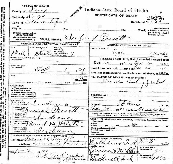 Death Certificate - Unnamed Male Pruett