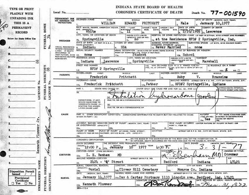 Death Certificate - William Edward Pritchett