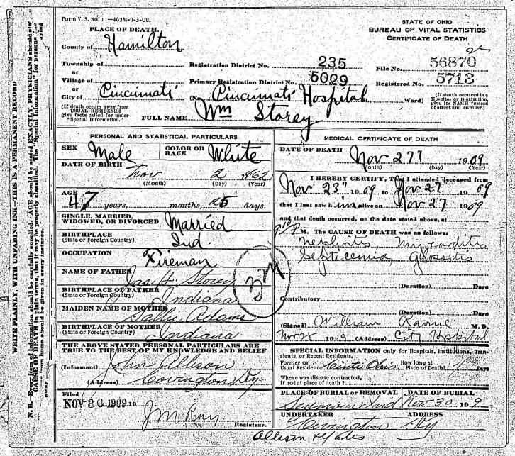 Death Certificate - William Henry Story