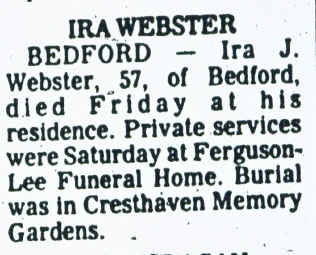 Death notice - Ira Webster