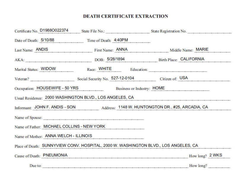 Death Records - Anna Marie (Collins) Andis