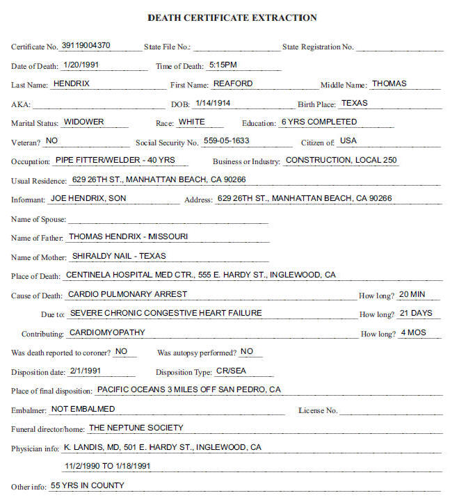 Death Record - Reaford Thomas Hendrix