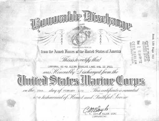 Military Discharge - Glenn Douglas Laws