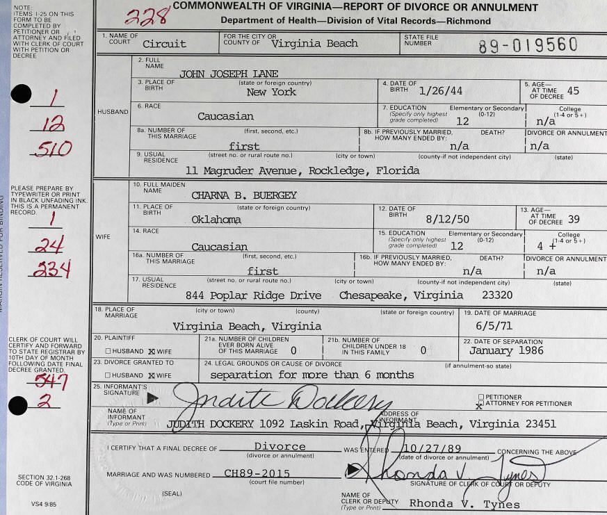 Divorce - Buergey and Lane
