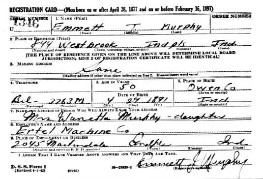 Draft Card - Emmett James Murphy