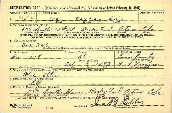 WWI and WWII Draft - Ira Bentley Ellis