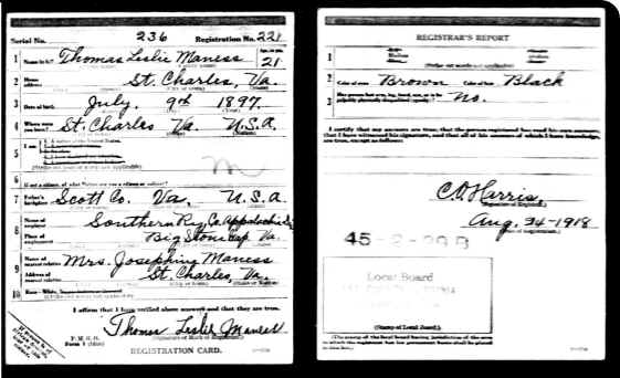 Draft Card - Thomas Leslie Maness