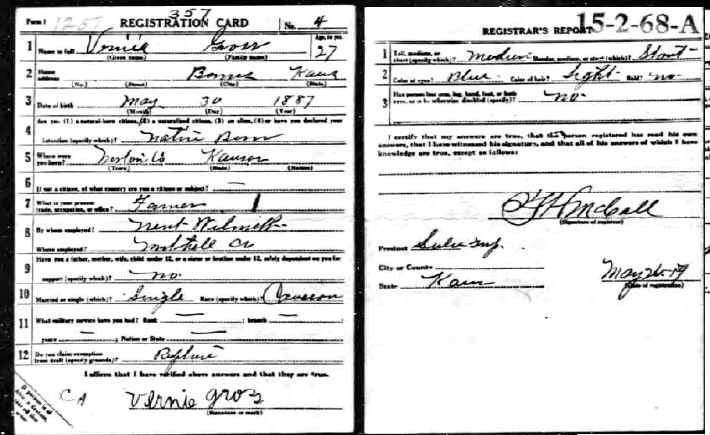 Draft Card - Vernon L "Vernie" Gross