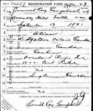 Draft Card - Ernest Roy Campbell