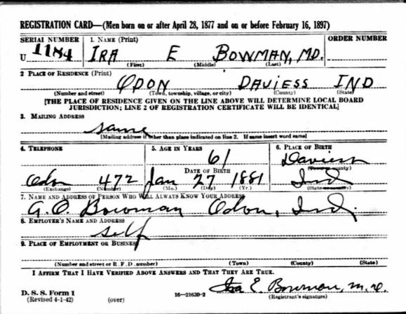 Draft Card - Ira Edgar Bowman