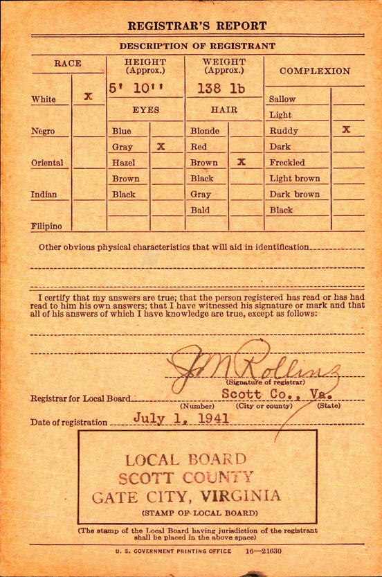 Draft Card - James Carl McDavid