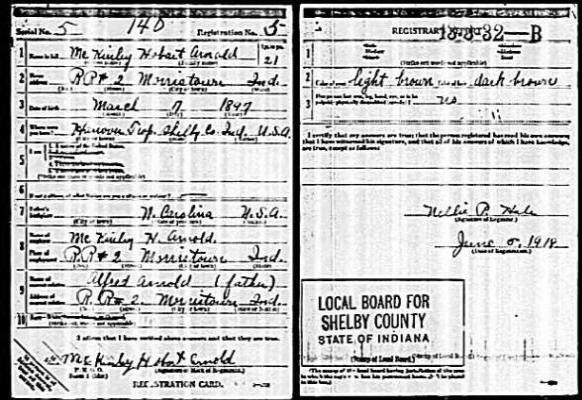 Draft Card - McKinley Hobart Arnold
