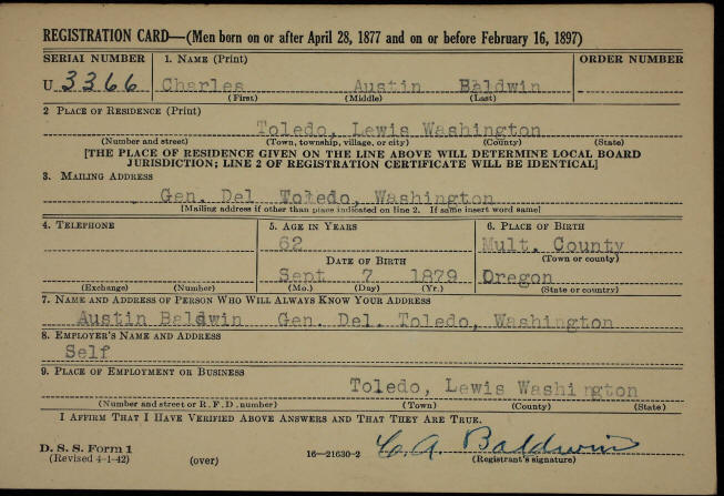 Draft Cards - Charles Austin Baldwin