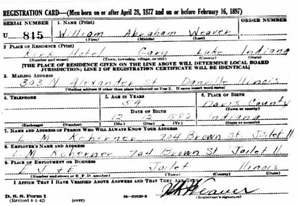 Draft Cards - William Abraham Weaver