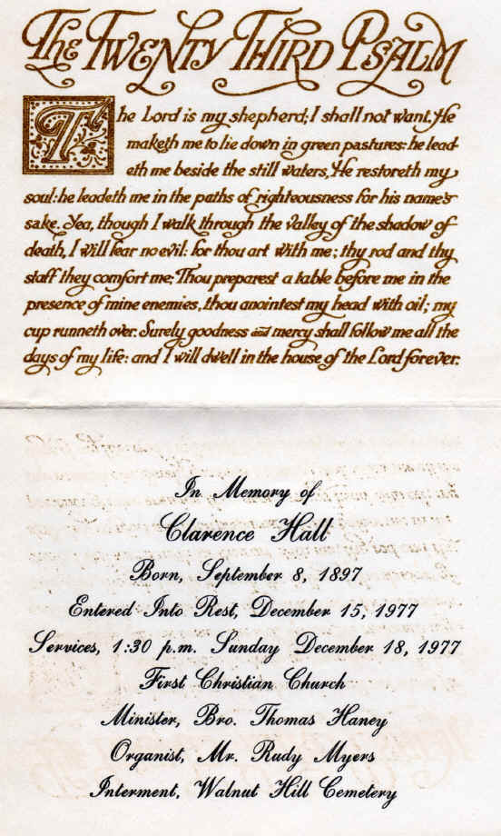 Funeral Card - Clarence Elvy Hall