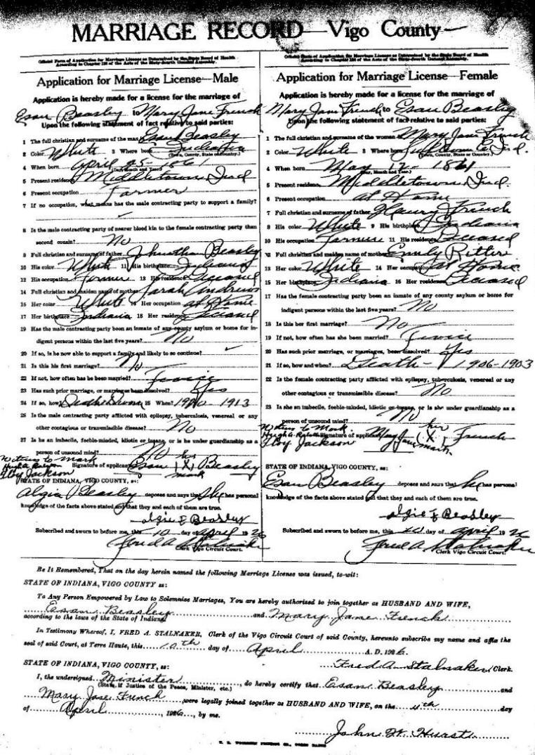 | Marriage Place: | Vigo, Indiana |