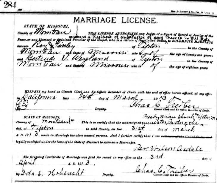 Marriage - Finley and Weyland