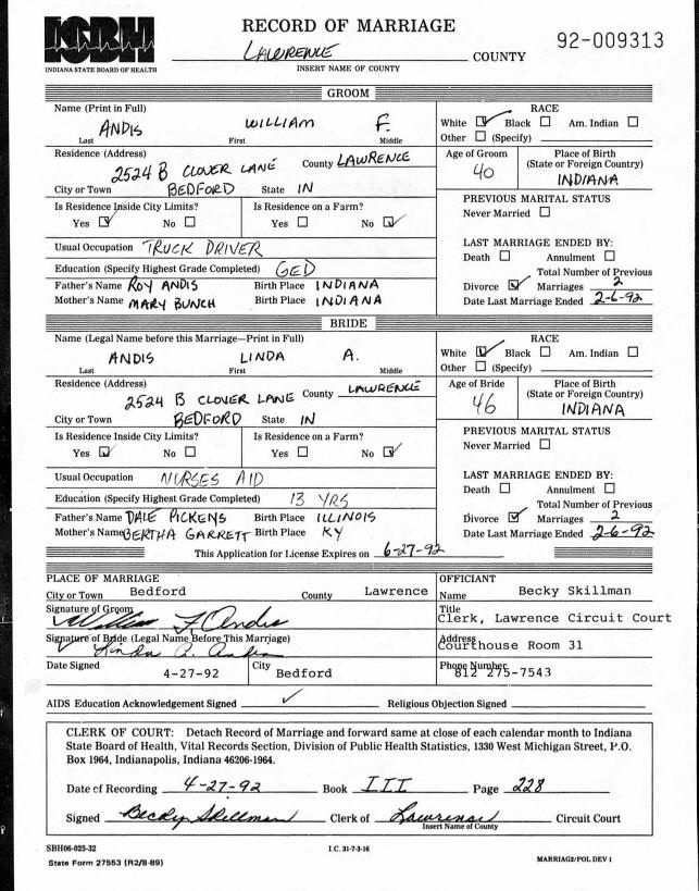 Marriage - Andis and Pickins