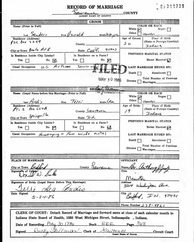 Marriage - Andis and Sanders
