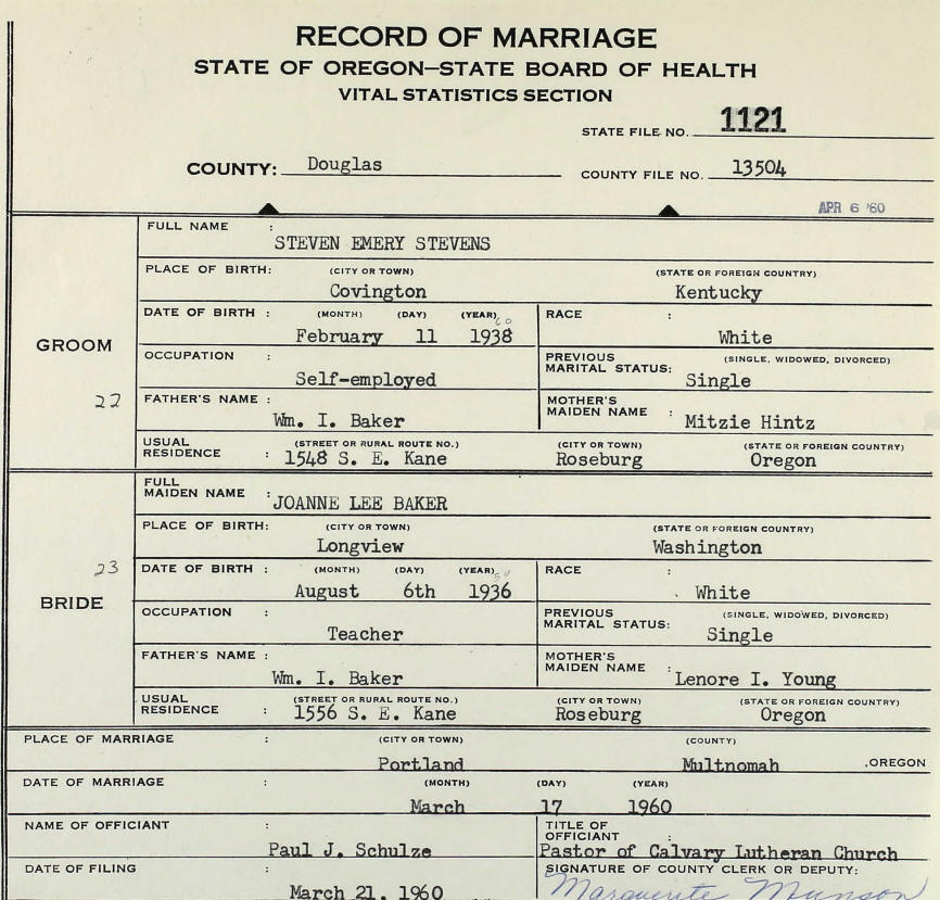 Marriage - Baker and Stevens