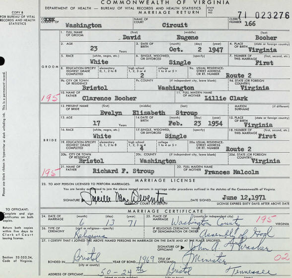 Marriage - Booher and Stroup