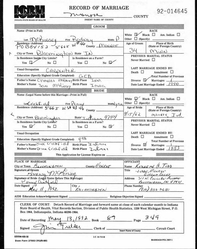 Marriage - Crichfield and McKinsey