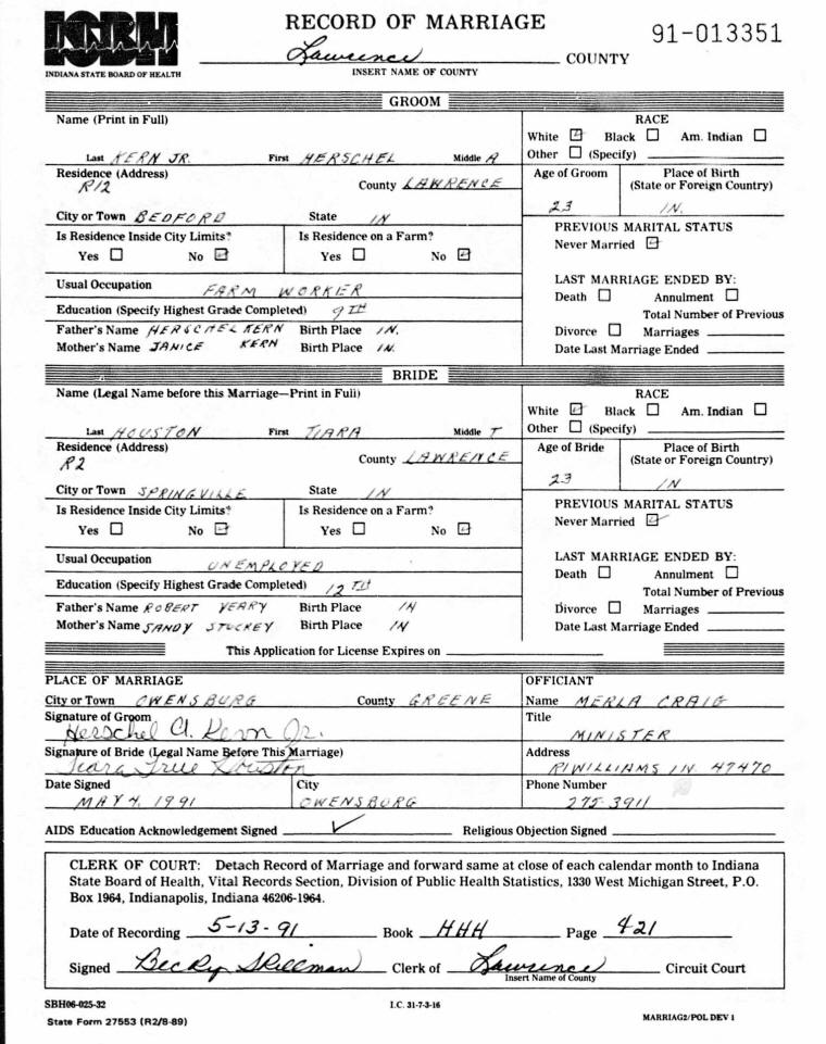 Marriage - Kern and Houston