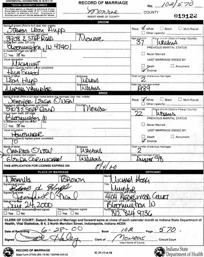 Marriage - O'Neal and Hupp