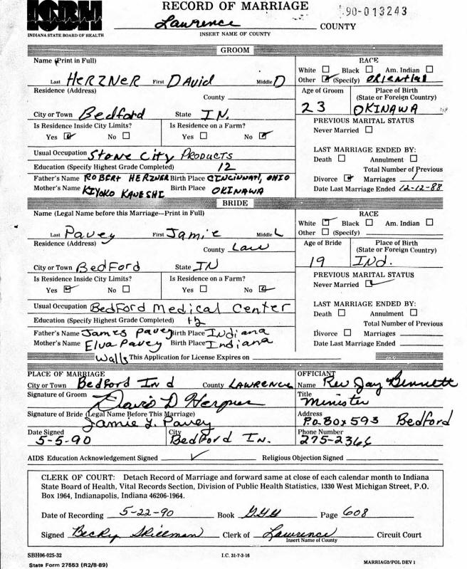 Marriage - Pavey and Herzner