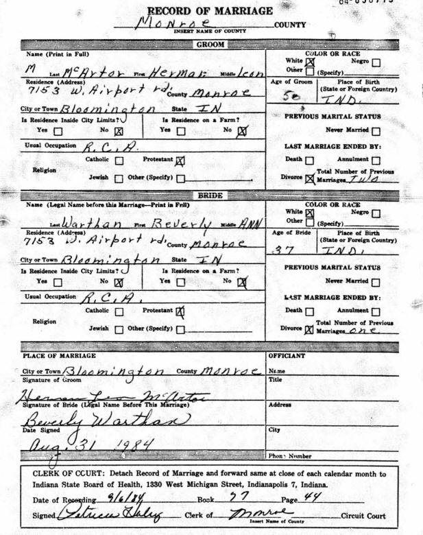 Marriage - Stubblefield and McArtor