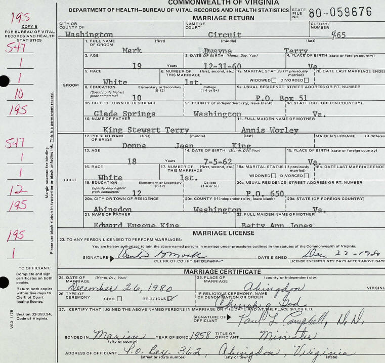 Marriage - Terry and King