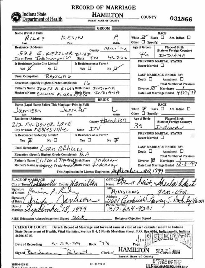 Marriage - Trowbridge and Riley