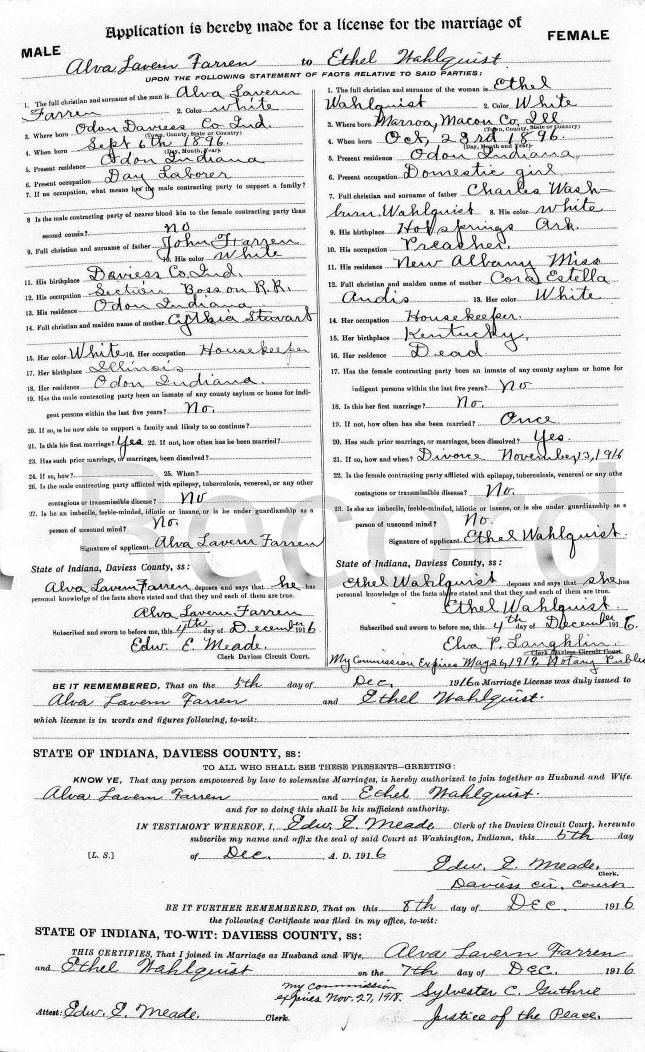 Marriage - Wahlquist and Farren