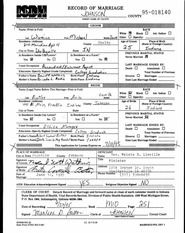 Marriage - Watkins and Butler